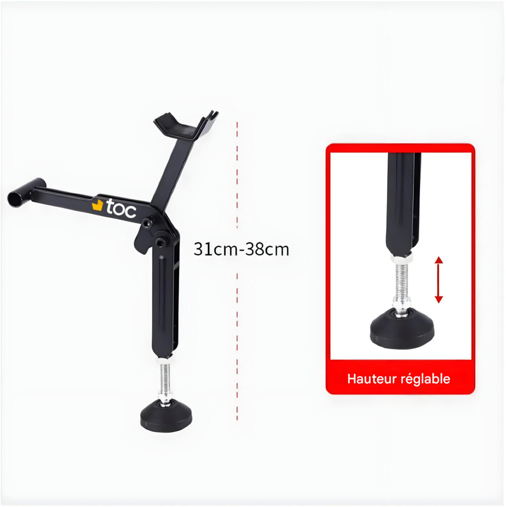 Transport Pratique : Avec sa conception pliable, cette béquille se transforme facilement d’un support solide à un format compact, facilitant son transport et son rangement. Idéale pour une utilisation en extérieur ou pour un stockage léger.