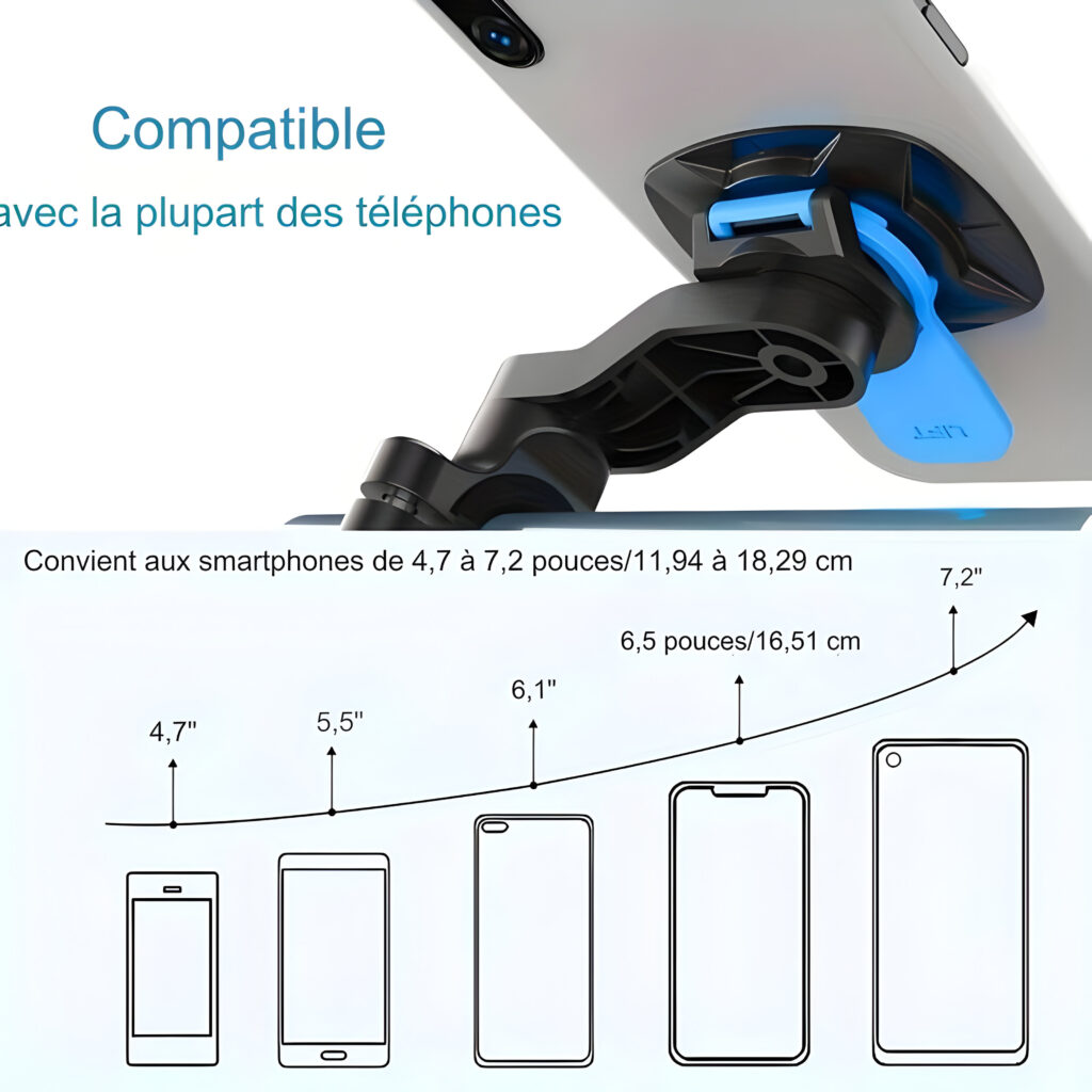 Facilité d’Utilisation : Ce support se fixe et se retire rapidement, offrant un accès facile à vos applications pendant vos trajets.