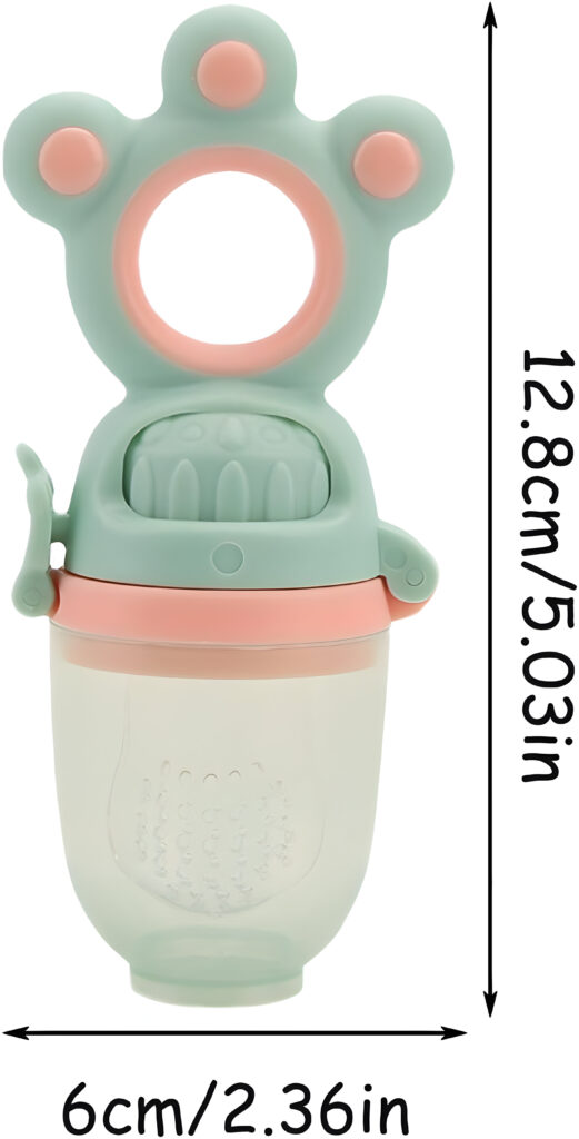 Utilisations Variées : Vous pouvez y placer une multitude d’aliments complémentaires, tels que des purées de fruits, du lait maternel ou des purées de légumes, permettant à votre bébé de mâcher et d’apprécier différentes saveurs.