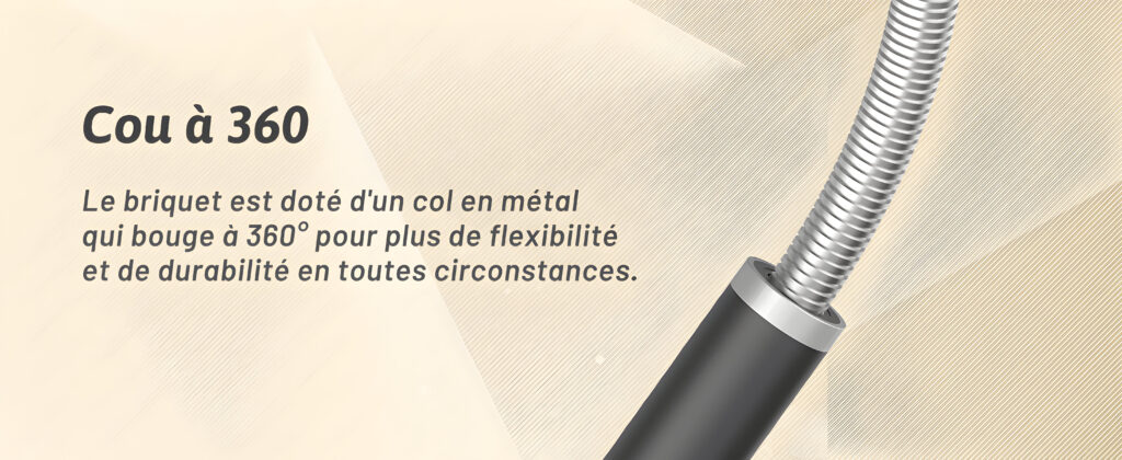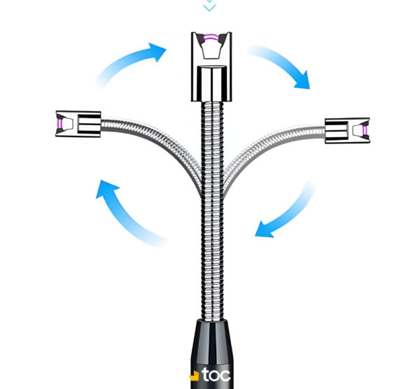 Briquet Flexible à Cou Rotatif à 360° : Ce briquet à arc est conçu avec un cou long et flexible, permettant de l’orienter dans toutes les directions pour s’adapter à diverses utilisations.