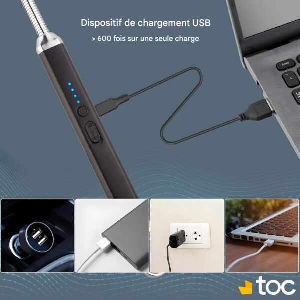 Découvrez notre briquet à arc innovant, doté d’un cou rotatif à 360° pour une utilisation pratique dans toutes les directions. Rechargeable par USB, il est écologique et sans flamme, offrant une sécurité optimale grâce à ses protections intégrées. Avec une batterie durable permettant jusqu’à 500 allumages par charge, ce briquet est parfait pour toutes vos activités, que ce soit en intérieur ou en extérieur. Idéal pour la cuisine, les barbecues ou les feux de camp, il allie fonctionnalité et design moderne.