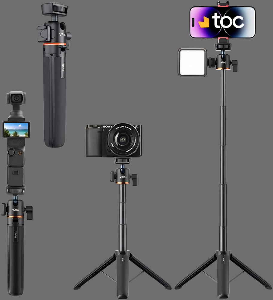 Accessoires Inclus : Livrée avec un mini trépied ajustable (21-55 cm, 222 g) pour stabilité, lanière de transport et câble USB-C. Le trépied supporte jusqu’à 1 kg avec tête 1/4″ et aimant.