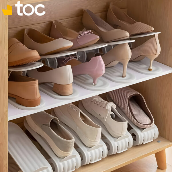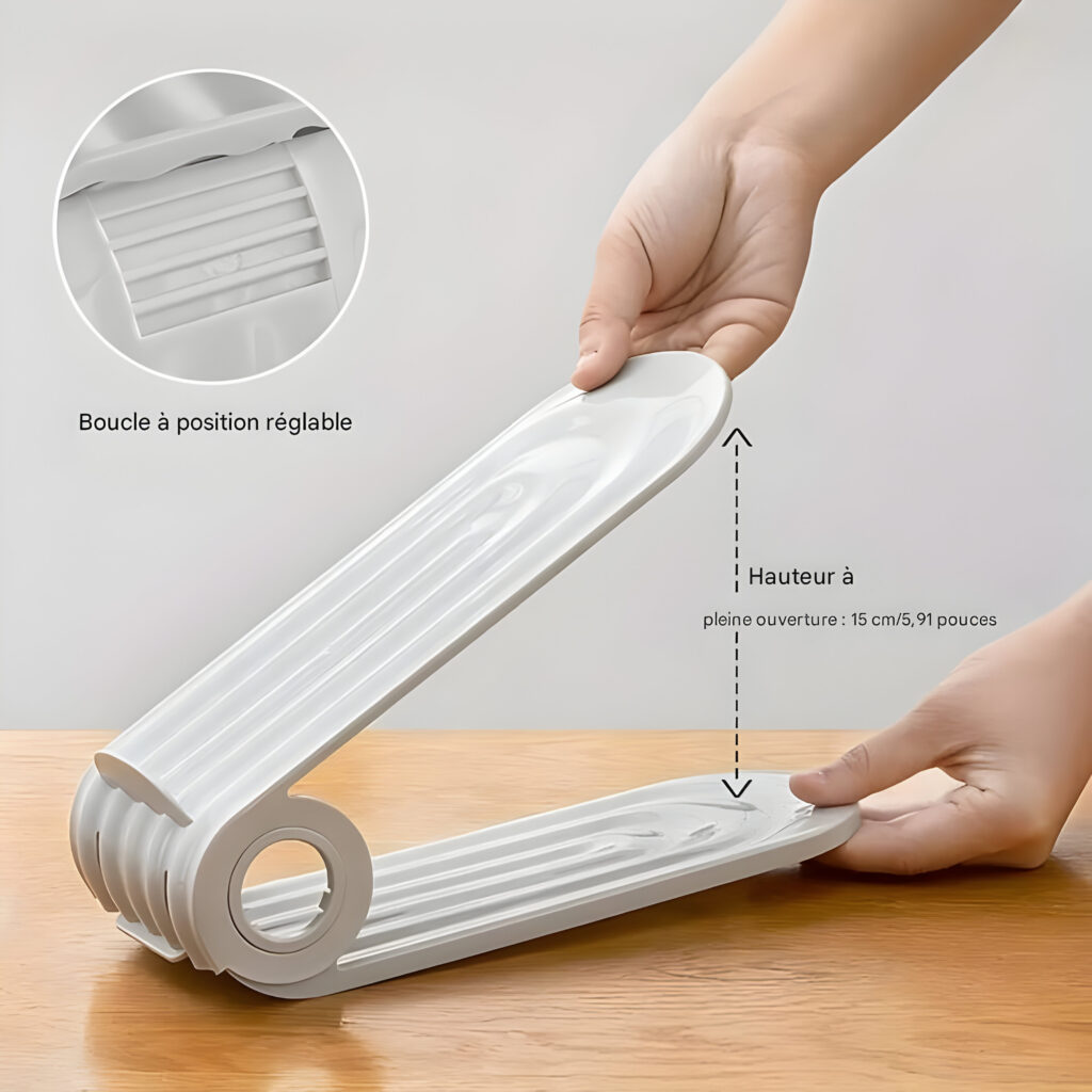 Optimisez votre espace de rangement avec notre étagère à chaussures à double niveau, qui vous permet de gagner 50 % d’espace. Ajustable en hauteur, elle s’adapte à tous types de chaussures, des baskets aux talons hauts, tout en les protégeant de la compression. Fabriquée en ABS de qualité supérieure et en PP durable, elle est conçue pour résister à l’usure et supporter des charges lourdes. Sa conception robuste avec rainures assure une stabilité optimale, maintenant vos chaussures en place et gardant votre espace de rangement propre et organisé.