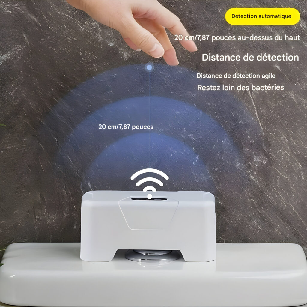 Technologie de Détection Infrarouge : Ce dispositif utilise un capteur infrarouge innovant qui détecte votre main et déclenche automatiquement le rinçage des toilettes, évitant ainsi tout contact avec les surfaces.