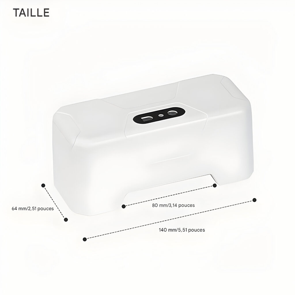 Recharge Facile : Doté d’une batterie lithium de 2000 mAh, ce dispositif se recharge via USB et peut fonctionner en continu jusqu’à 6 mois après une charge complète.