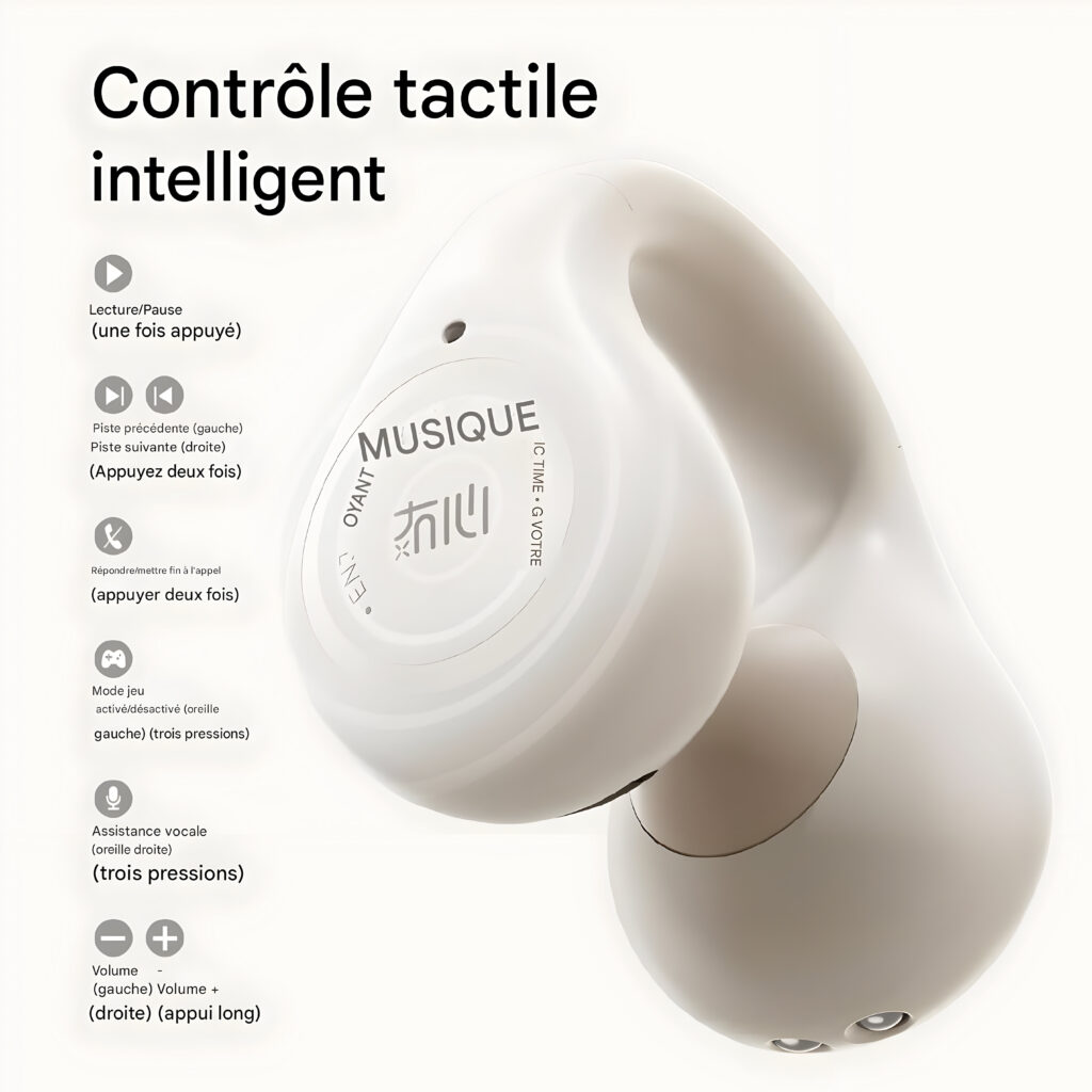 Écouteurs à Clip Ouverts : Découvrez nos écouteurs Bluetooth à clip d’oreille, conçus pour un confort optimal sans insertion dans le conduit auditif. Leur coussin d’air liquide s’adapte à toutes les formes d’oreilles.