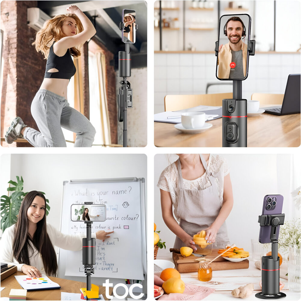 Suivi Automatique Intelligent : Découvrez notre support de téléphone équipé d’une caméra AI qui suit automatiquement les visages et les mouvements. Ce bâton de selfie intelligent pivote à 360°, reconnaissant rapidement et précisément les visages ou les mouvements du corps. Libérez vos mains pour profiter de vos chats vidéo ou de vos diffusions en direct sans tracas.